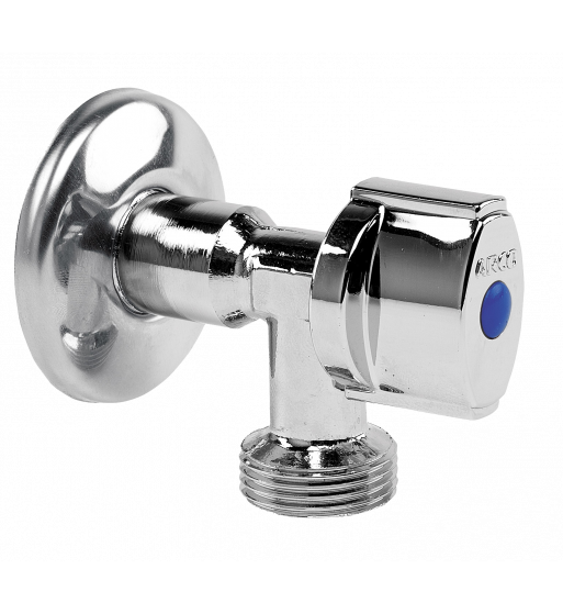 Robinet colțar Arco VITAQ L-85 pentru mașina de spălat, cu protecție anti-calcar. Se utilizează în instalaţiile sanitare casnice, având rolul de a închide/deschide alimentarea cu apă a maşinii de spălat haine/spălat vase.